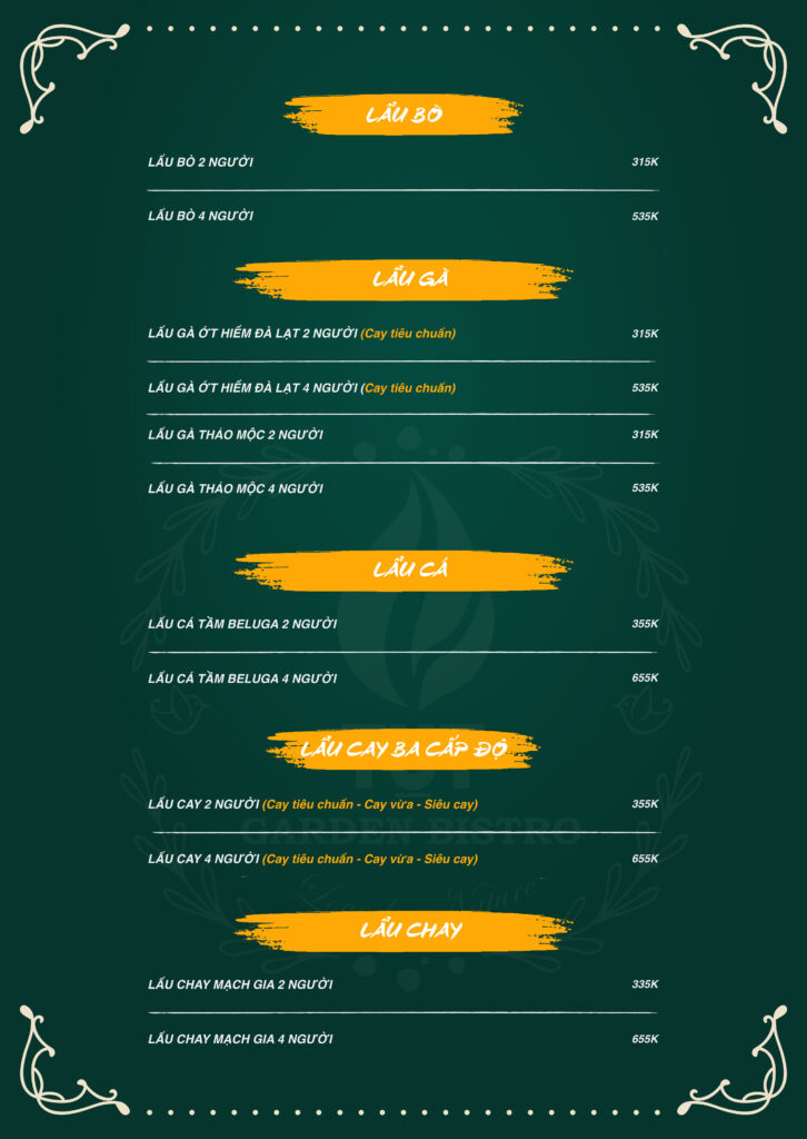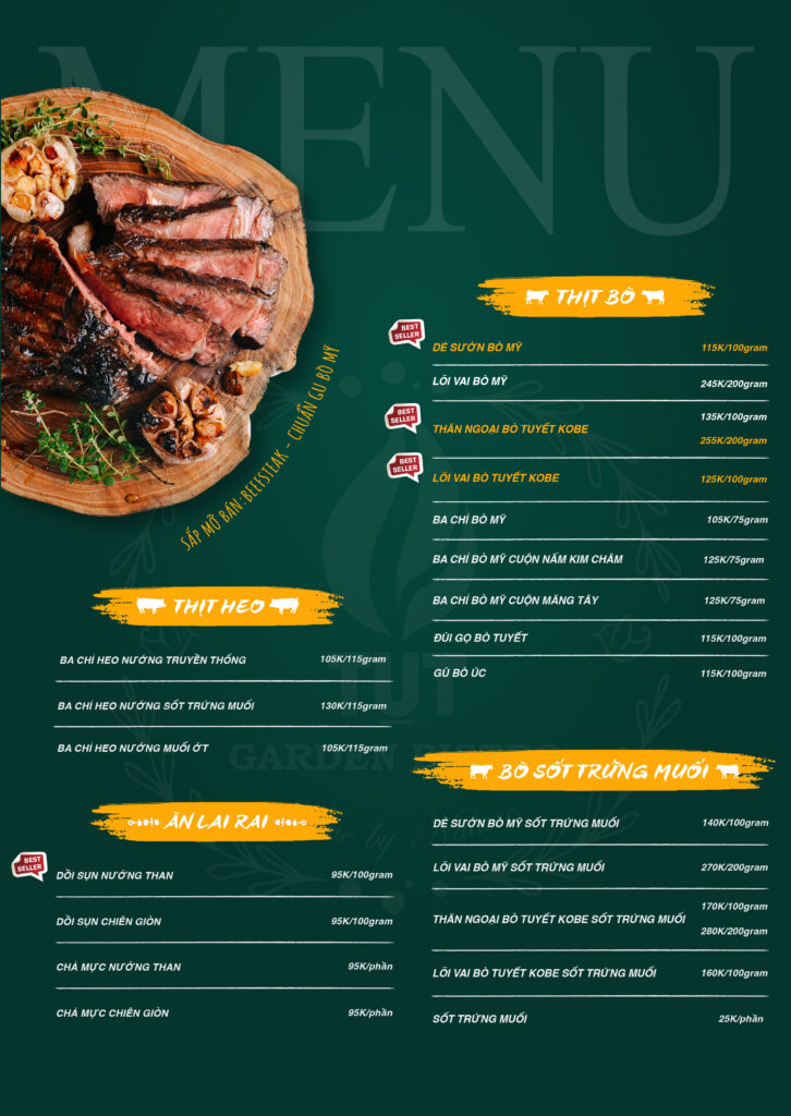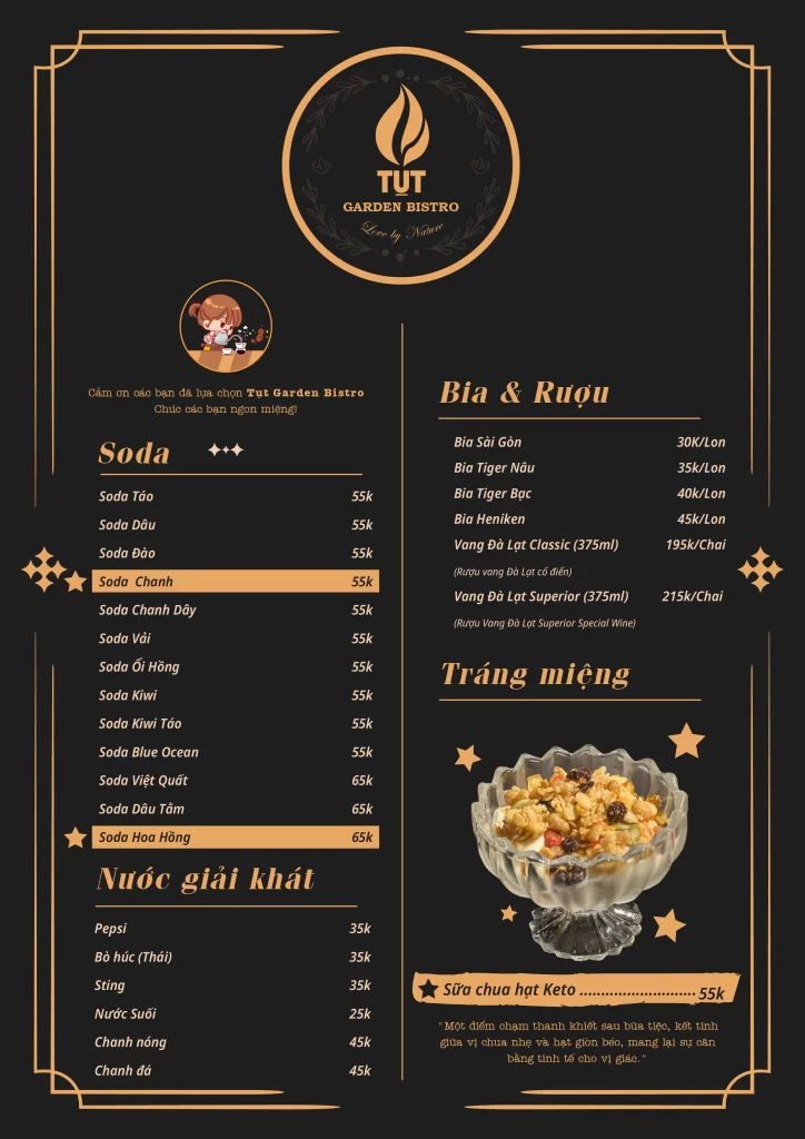 Menu Tut Garden Bistro (Tụt nướng – Tiệm nướng Đà Lạt) x Nhà hàng Chay Mạch Gia