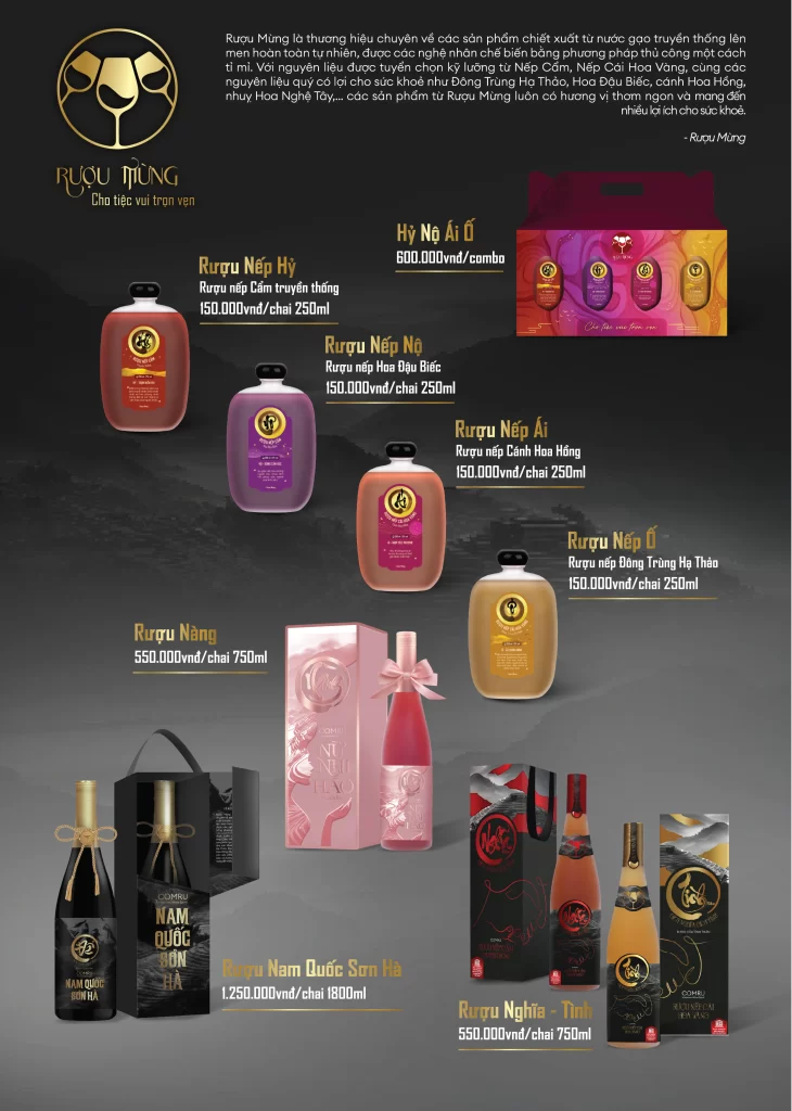 🍷 Rượu Mừng mang trong mình tinh thần sum vầy Việt—ly rượu không chỉ để chúc tụng mà còn để kết nối tình thân. Với hương vị đậm đà, thiết kế tinh tế và sự chỉn chu trong từng chi tiết, thương hiệu đã được UNESCO vinh danh trong hạng mục Sản phẩm Ẩm thực – Văn hóa truyền thống Việt Nam. Mỗi chai không đơn thuần là một thức uống, mà là món quà chứa đựng niềm tự hào và giá trị trao tặng.